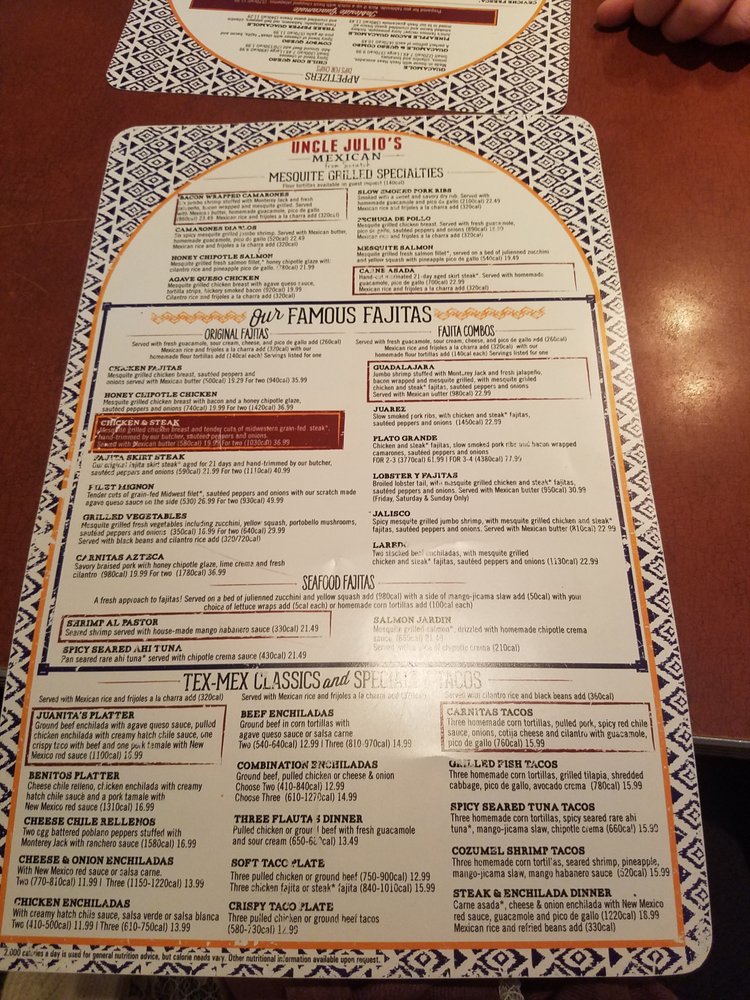 Uncle Julio's Menu